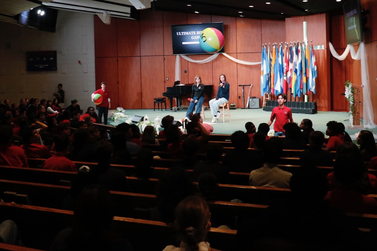 After everyone sang a hymn together today (Friday), the Spiritual Life Team then led in another exciting game of "Ultimate Bible Ball." The chapel was divided into three groups, and a beach ball was bounced around within each section. When the leader called "stop," the person holding the ball chose a category—one, two, or three. A question from First or Second Chronicles was then read aloud based on the chosen category, and the group worked together to come up with the answer. It was a fun and interactive way to learn more about the stories and lessons found in Chronicles.