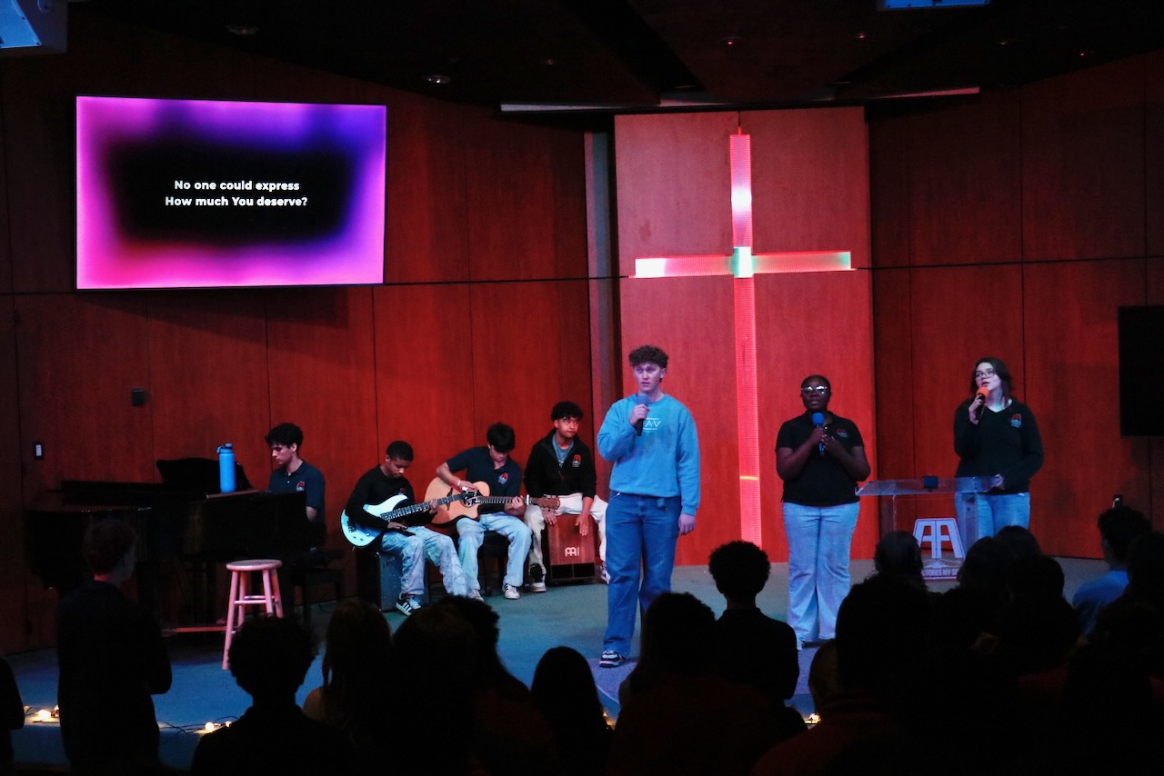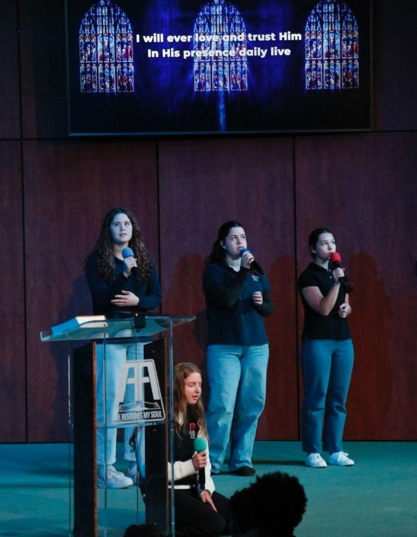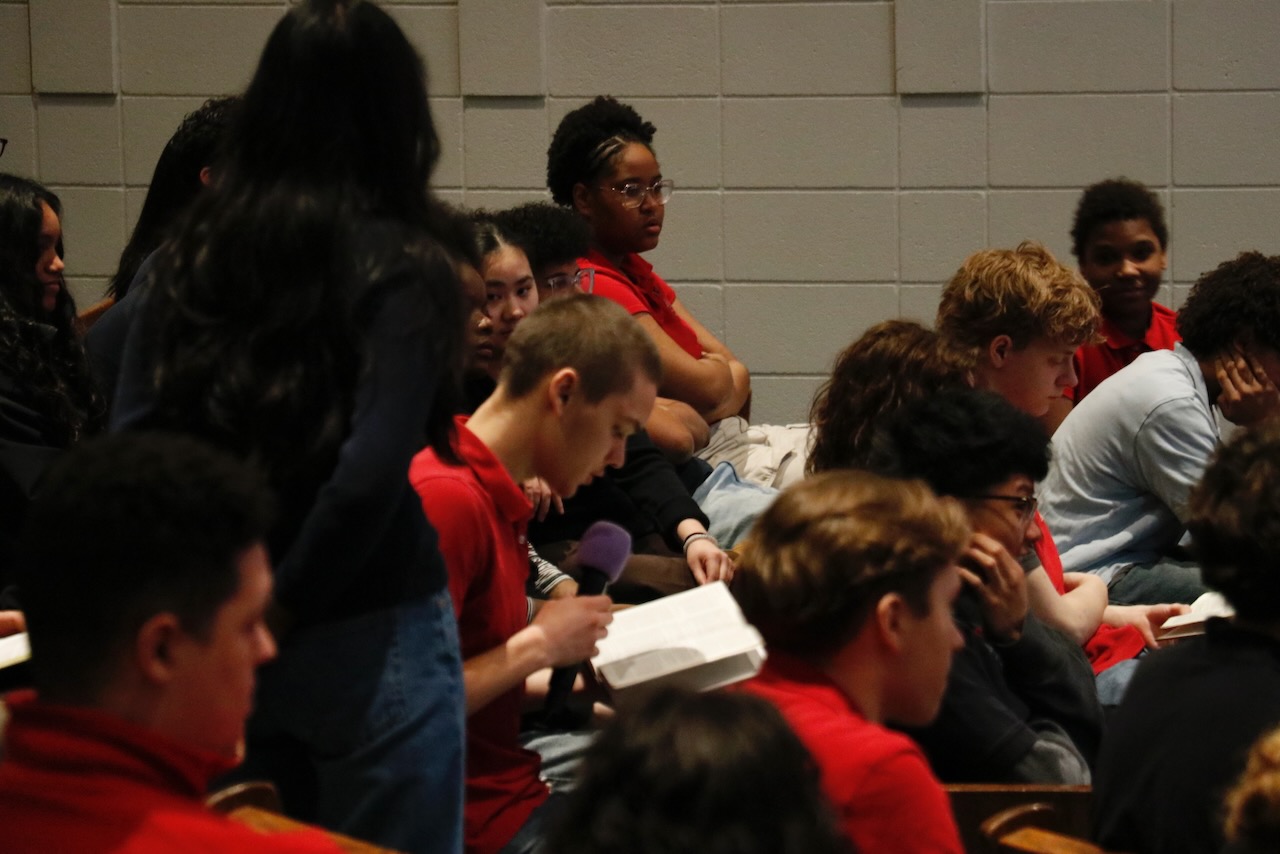 Senior Lily Murphy led the Monday worship thought using Matthew 12:30, describing lukewarmness as minimal effort, lack of care, and weak commitment to Jesus. She compared it to a poor internet connection disrupting a live stream, illustrating how a shallow relationship with Christ leads to frustration and distance. Referencing Revelation 3:15, she emphasized that being “hot or cold” is better than lukewarm and urged students to fully commit. She encouraged seeking support from friends, family, and teachers, stressing the importance of taking action and avoiding spiritual complacency.