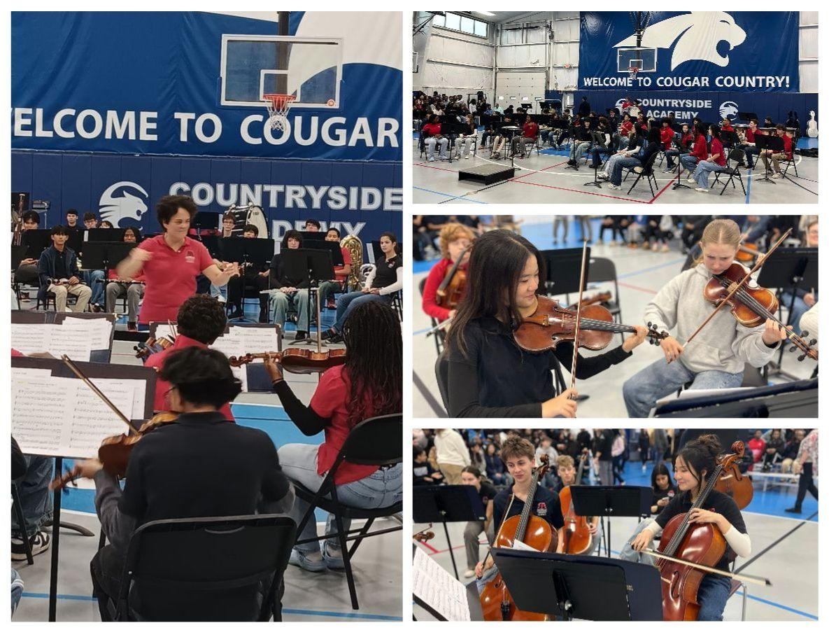 Yesterday, Thursday, November 20, the Symphonic Band, Orion Strings, and String Orchestra presented a Fall Concert for middle and high school students at Countryside Academy in Benton Harbor. The performances were received with genuine and remarkable enthusiasm. Students were introduced to sacred and classical music they were not familiar with, but they remained attentive, curious, and enjoyed the experience very much.
