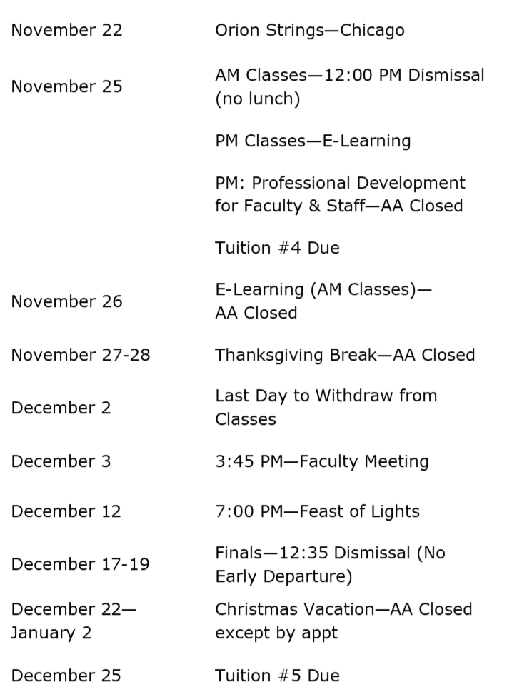 The Sophomore Class will have a Thanksgiving class vespers tonight, Friday, November 21, from 6:00-8:00 PM. A signed permission slip is required to attend.