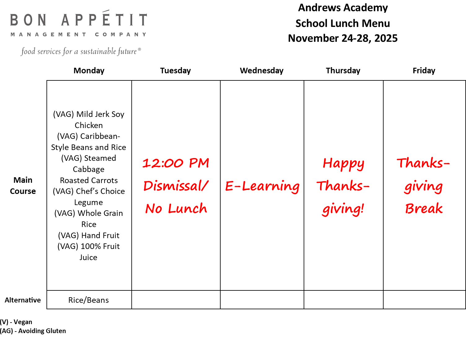 Attention Students: If you would like Friday's boxed lunch, those who are signed up for the lunch program must order it each week by Wednesday at 2:00 PM. The sign-up sheet will be at lunch or in the main office.