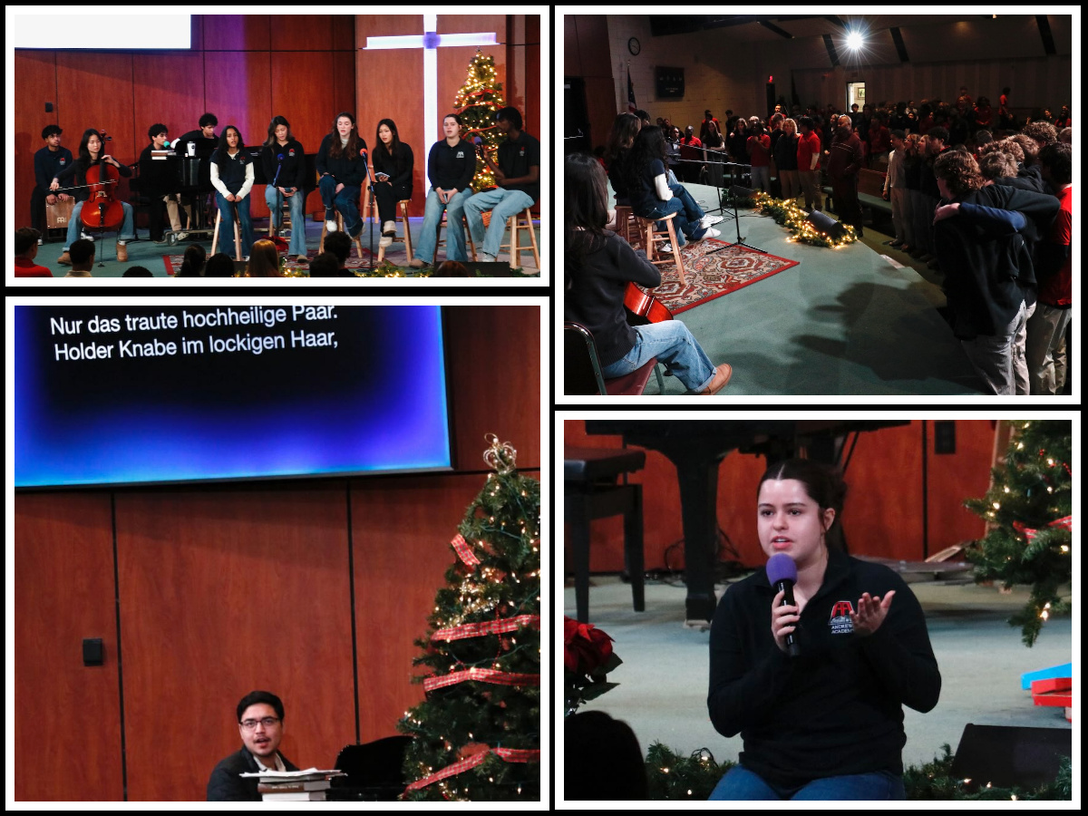 On Monday, AA choir teacher, Mr. Daniel Cerna, led us in singing “Silent Night,” the closing song from Friday evening’s Feast of Lights. As in the concert, we sang in German, Spanish, and English, but this time we focused on reflection and meaning rather than performance.