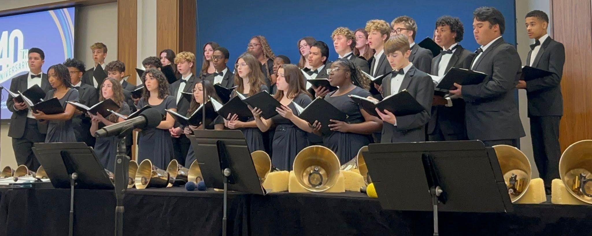 This fall, Andrews Academy’s Silhouettes (small choir) and Resound (handbells) ensembles embarked on their annual music tour—held earlier than usual this year due to a special invitation from the North American Division of Seventh-day Adventists (NAD) to perform at their fall meetings on Sabbath. Both groups worked diligently to prepare a repertoire so early in the school year, and their fall tour included several concerts as well as rich educational and spiritual experiences in Washington, DC, area. Highlights included visits to the Lincoln Memorial and the World War II Memorial.