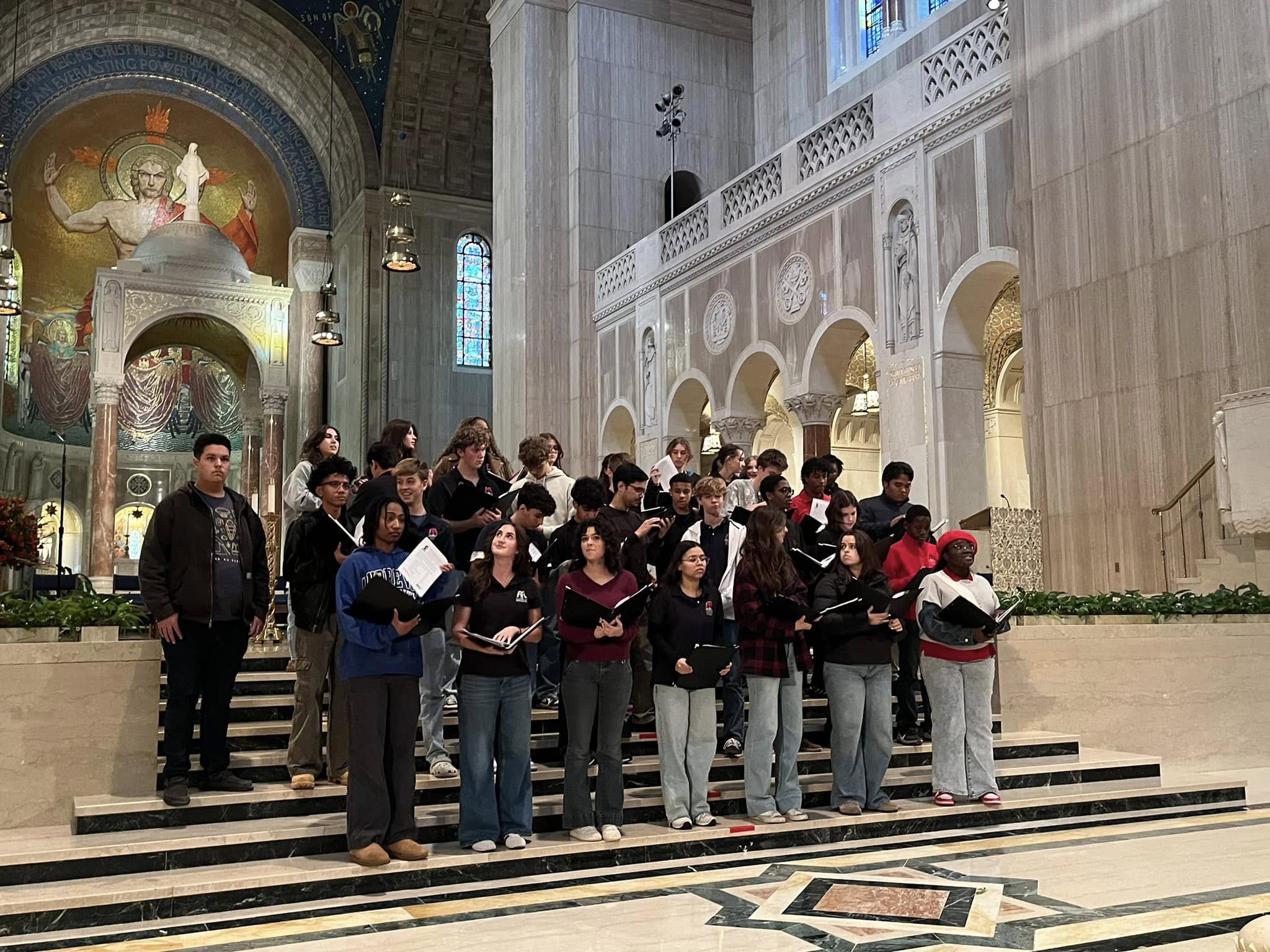 On Friday, Resound and Silhouettes presented a special concert at Spencerville Adventist Academy, blessing their sister academy through music and ministry. That afternoon, the Silhouettes had the rare opportunity to sing in the Basilica of the National Shrine, the largest basilica in the United States. The breathtaking architecture and extraordinary acoustics created a moving and unforgettable experience as their voices filled the sacred space. That evening, students from both academies gathered for a joint vespers service, worshiping together and building friendships.