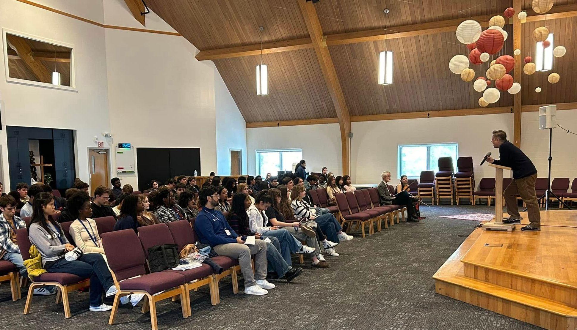 The event began with an introductory session about the college experience, followed by a college fair where students met with representatives from various departments and signed up for department tours scheduled for Monday morning. After dinner in the cafeteria, students attended worship at Pioneer Memorial Church and then enjoyed an evening of food, games, and activities at the Andreasen Center for Wellness on campus.