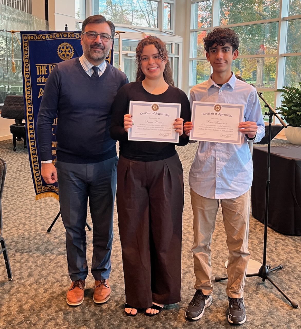 Rotary is a worldwide organization of more than 1.2 million people. Rotarians provide humanitarian service and help build goodwill and peace in the world. The Berrien Springs-Eau Claire Rotary Club serves the local community in a number of ways, one of which is recognizing students for their outstanding service and achievements. Iliana Murphy & Kevin Mendonca were among other local students recognized today during the Berrien Springs - Eau Claire Rotary Club Youth Appreciation Breakfast. (November 4, 2025)