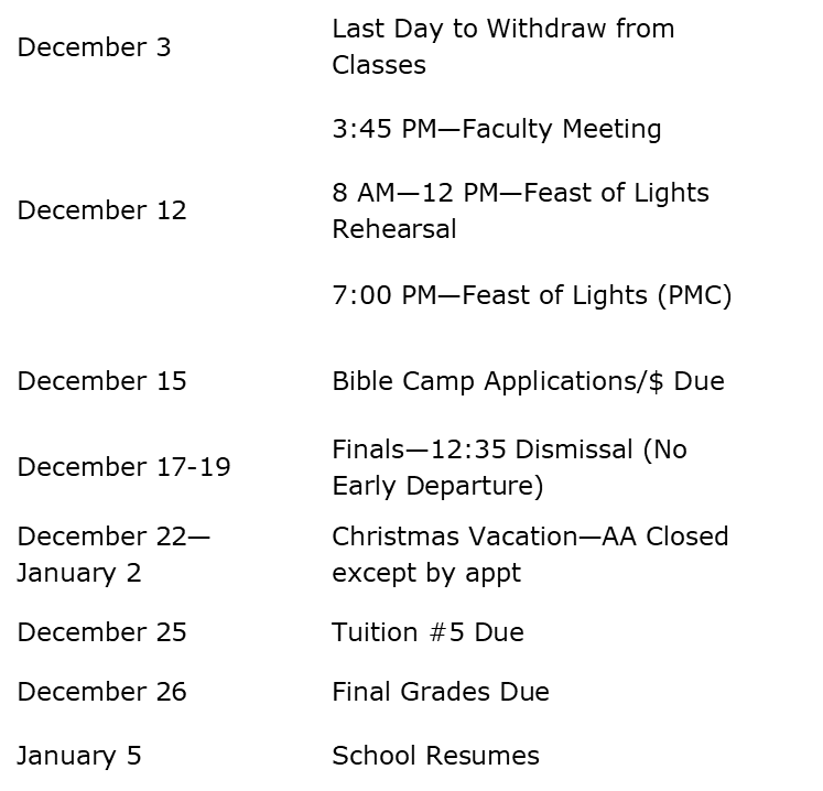 Andrews Academy would like to invite our Berrien Springs community to attend our annual Feast of Lights concert next Friday, December 12. Dr. Orrison began this "Gift to the Community" fifty-two years ago. Please join us for this free musical celebration of the birth of Jesus!